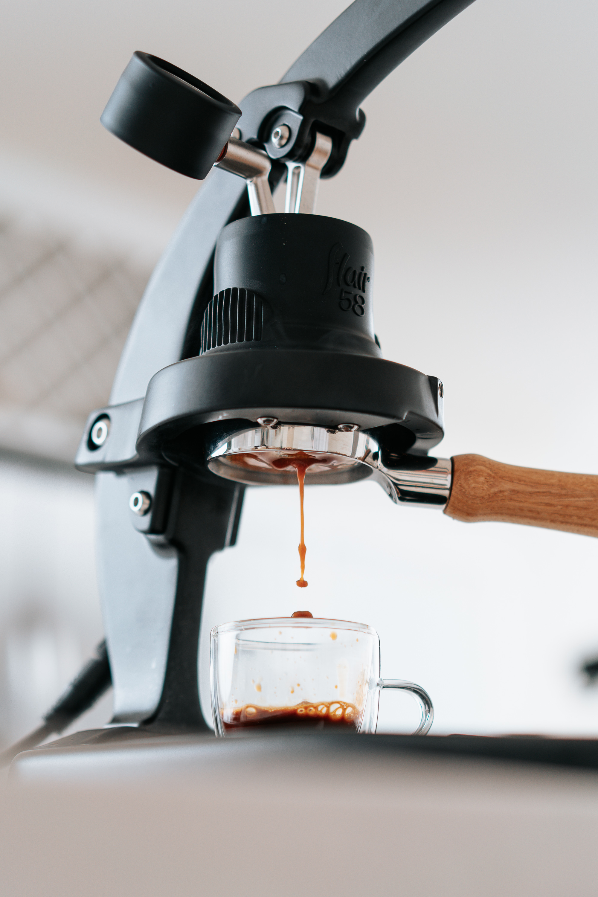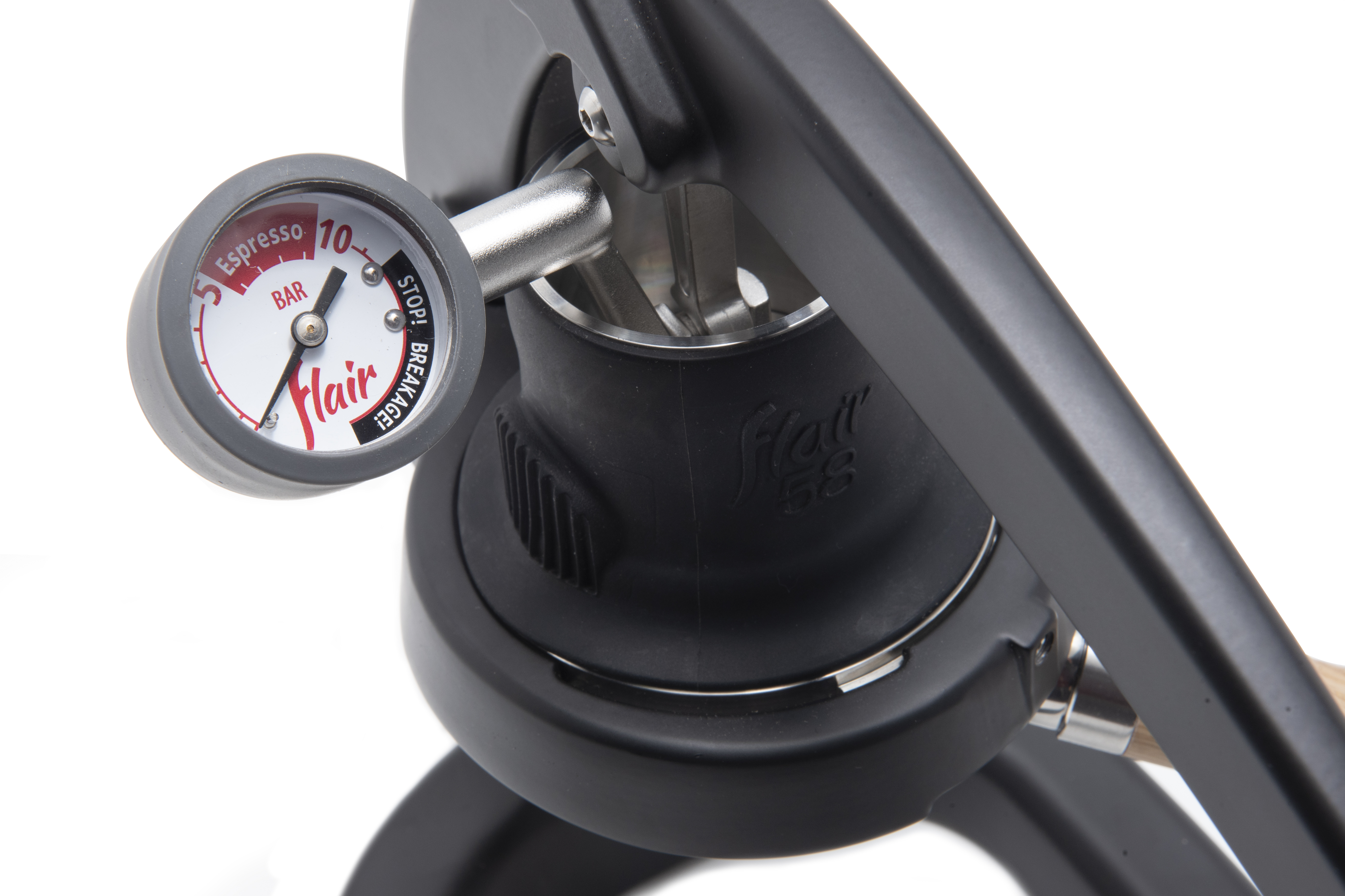 The Flair 58: ¡La insignia de Flair! Una prensa de espresso manual equipada con un sistema eléctrico de precalentamiento de tres niveles. Incluye un portafiltro de 58 mm con mango de madera, manómetro y una palanca alargada con empuñadura en T para una ergonomía avanzada en la preparación.
